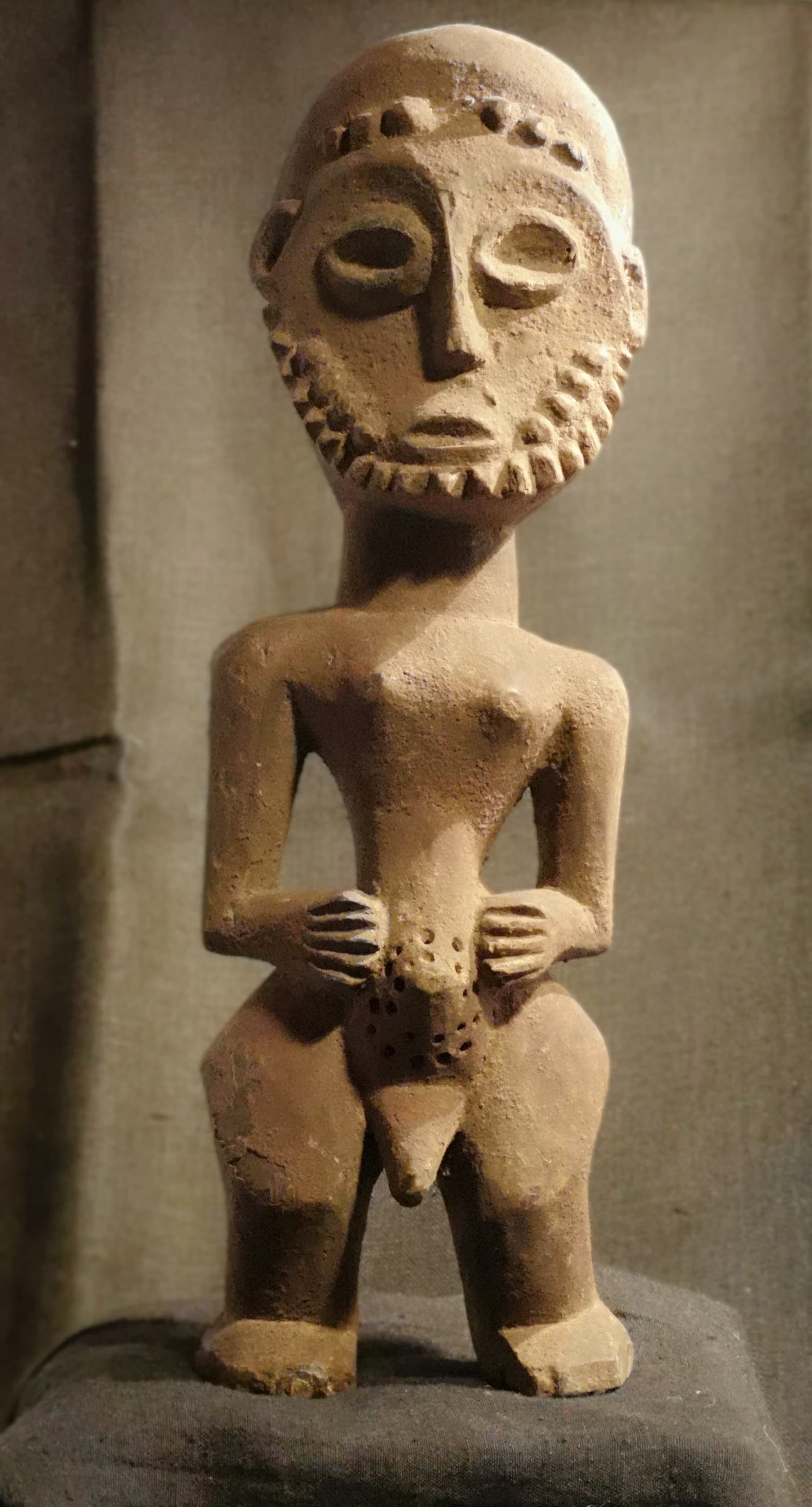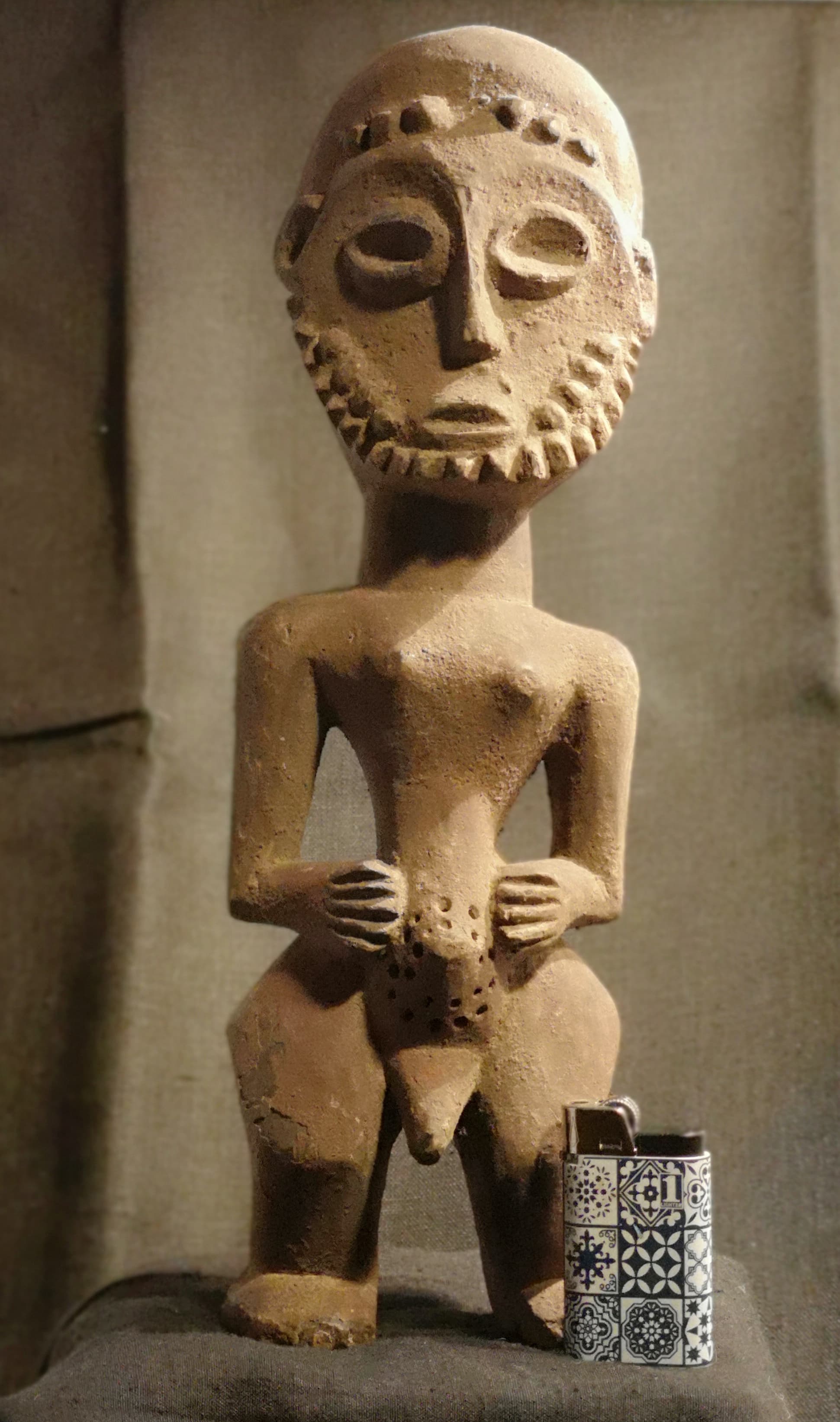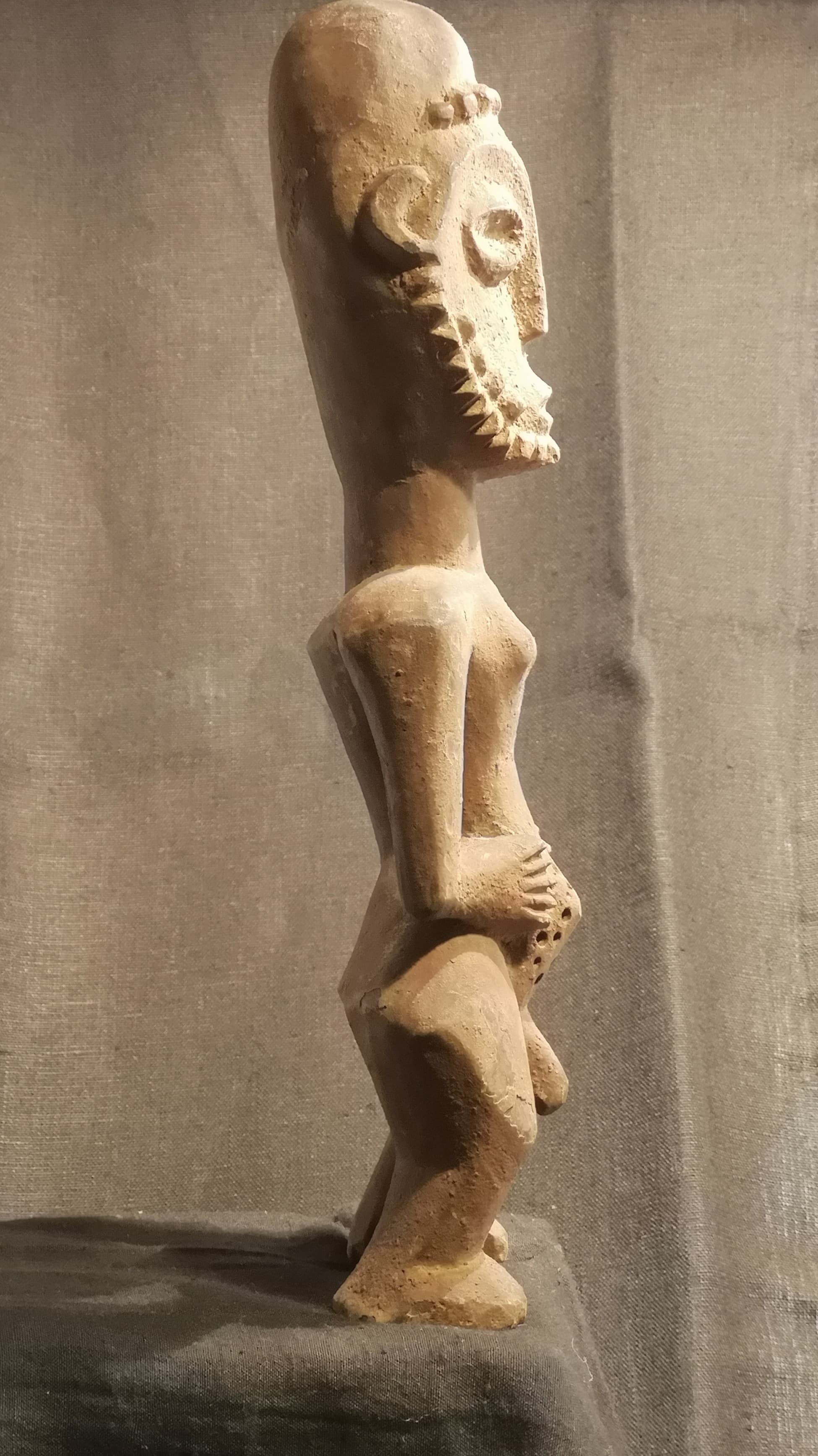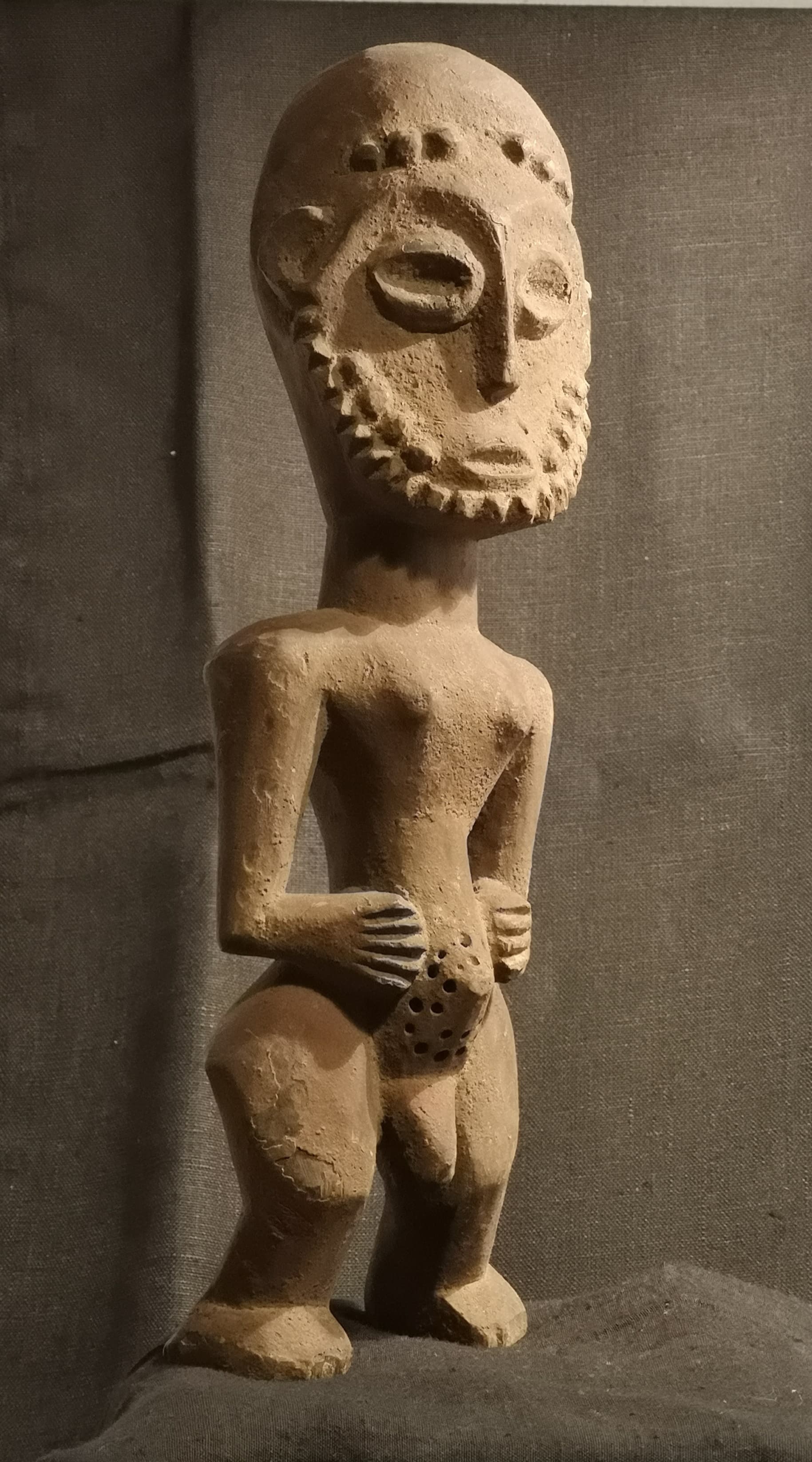 Stamfar-statue fra Hembafolket i D.R.Kongo, med patina som viser spor av tradisjonell bruk.