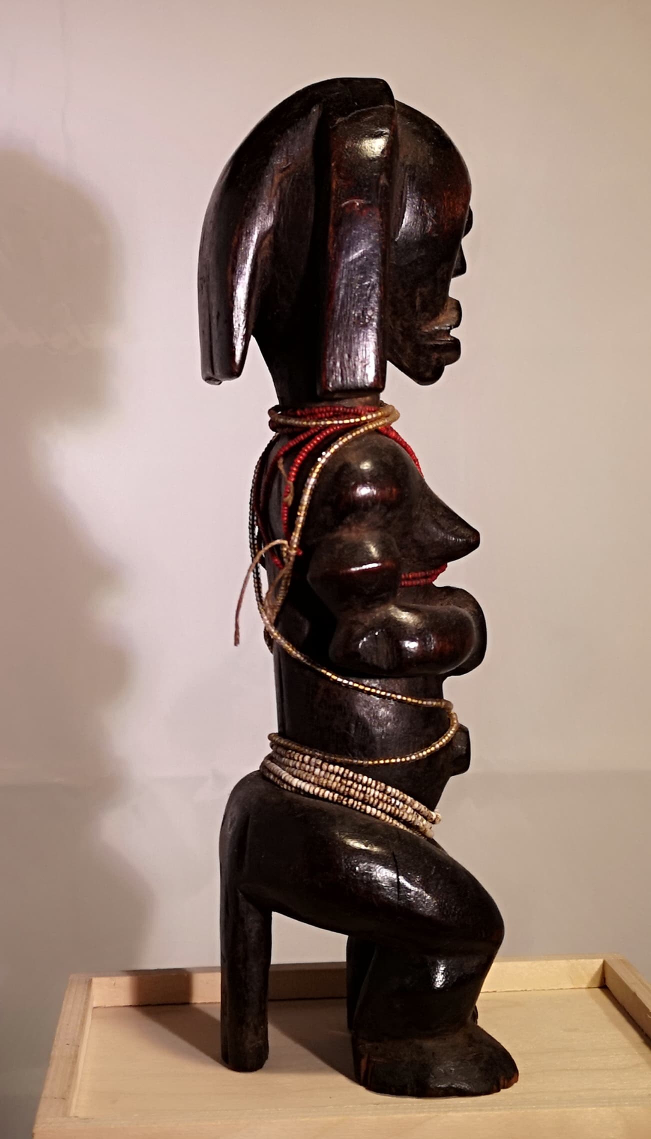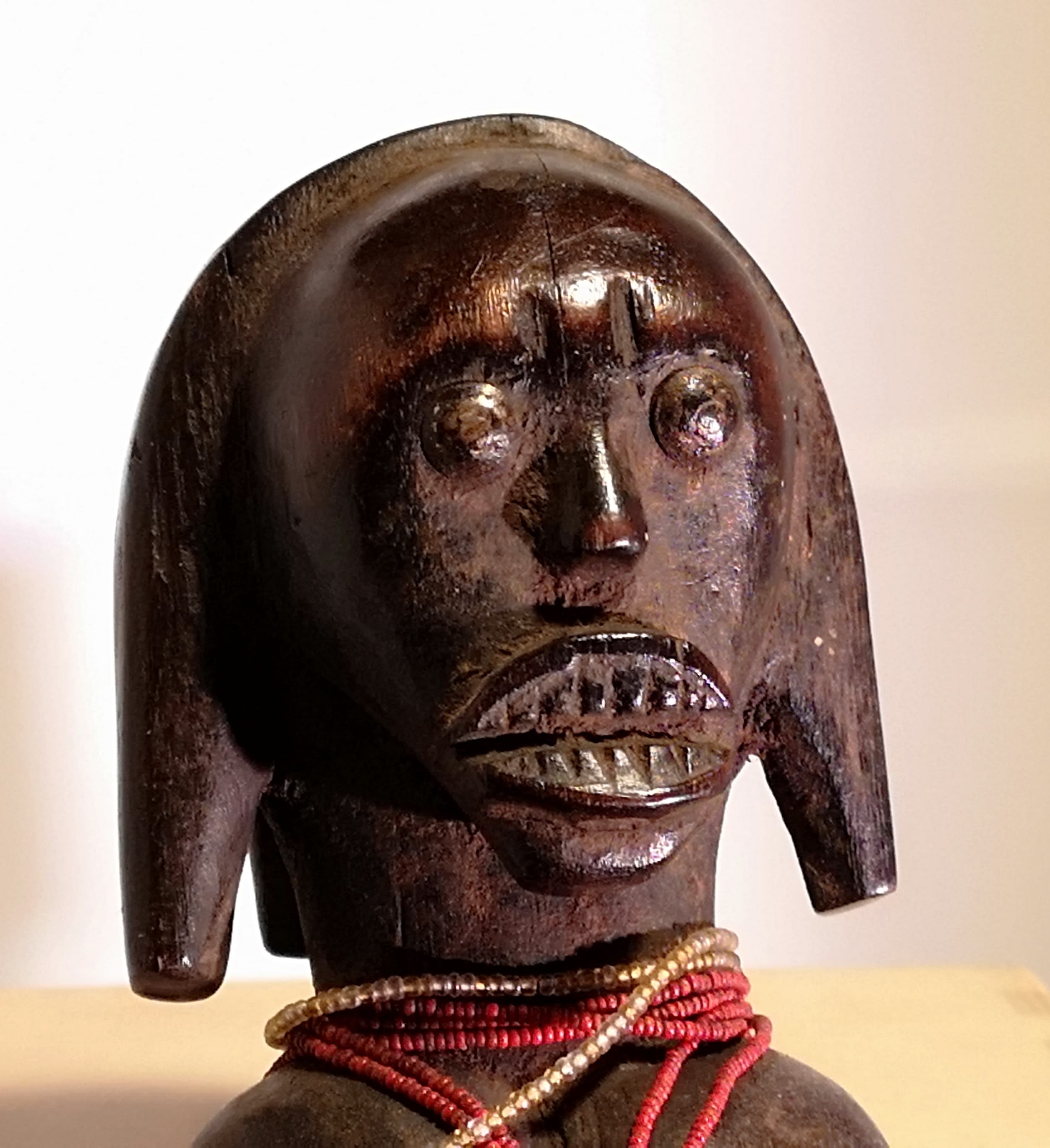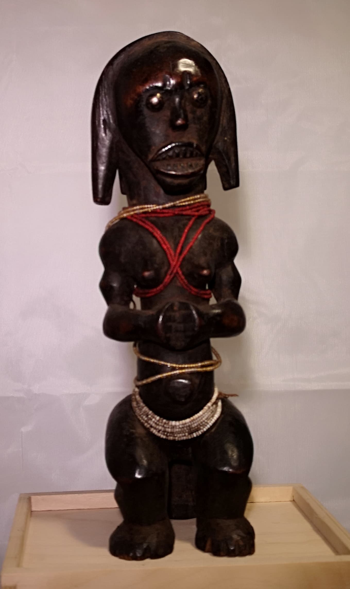 Vokter-figur fra Fang folket i Gabon. Ofte plassert på lokket av en beholder av bark ("urne") hvor levninger av forfedre ble oppbevart.