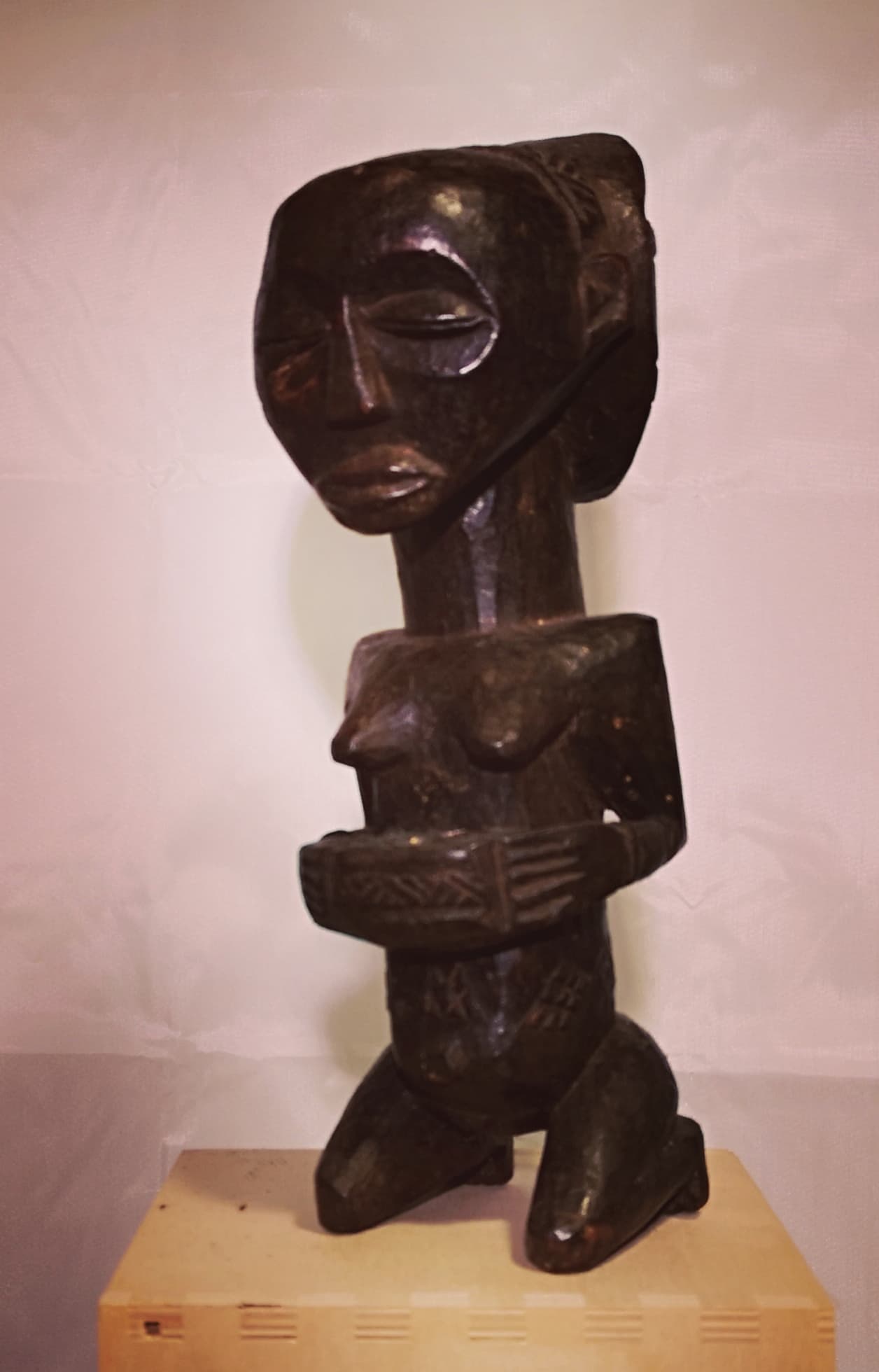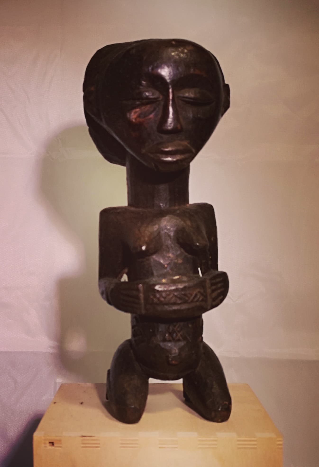 Liten skålbærer figur fra Luba folket i D.R.Congo.