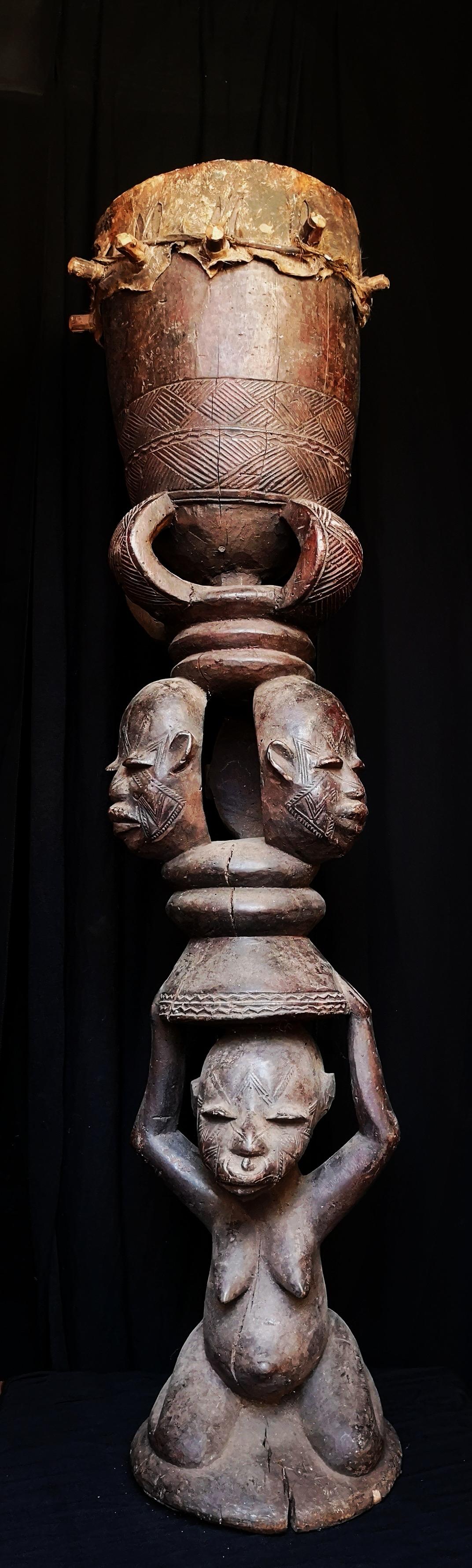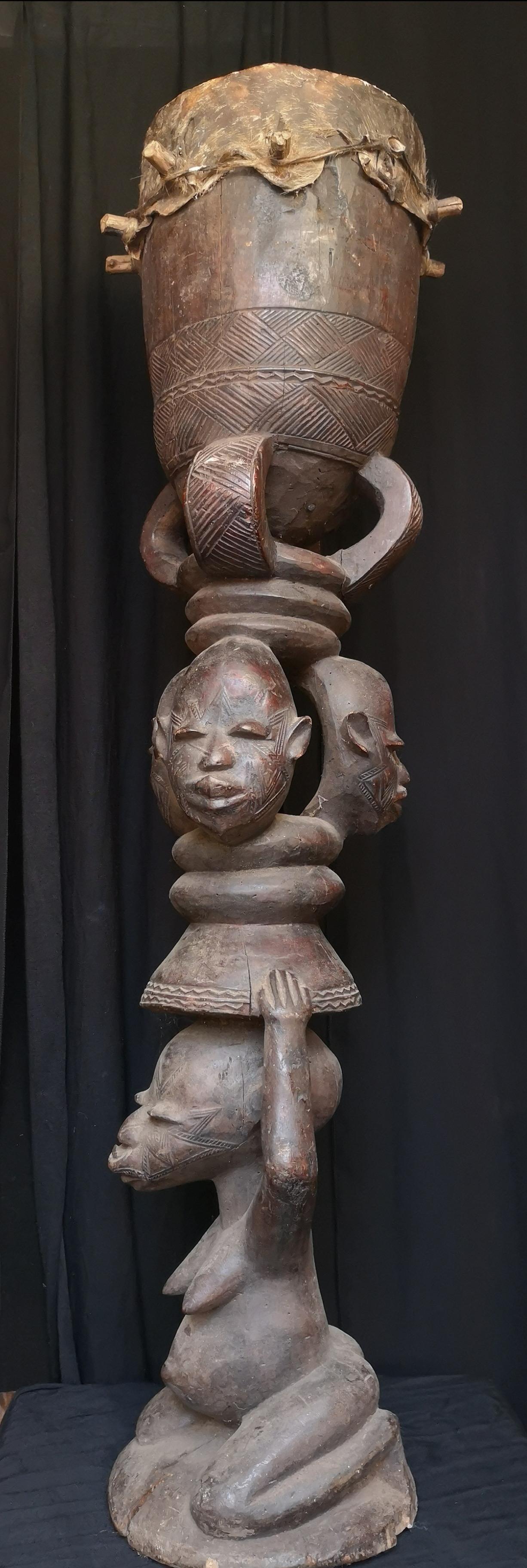 Meget vakker og vellaget stor tromme fra Senufo folket i VestAfrika. God stand, men spor av bruk og høy alder.