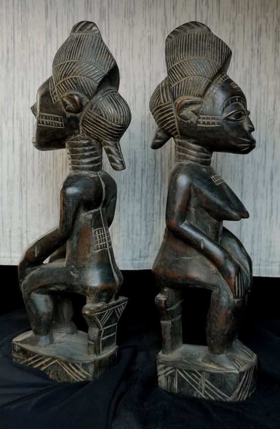 Forfedrefigurer, mann og kvinne, fra Baulé folket i Elfenbenskysten. Dyktig skÃ¥ret i meget hardt tre.Â