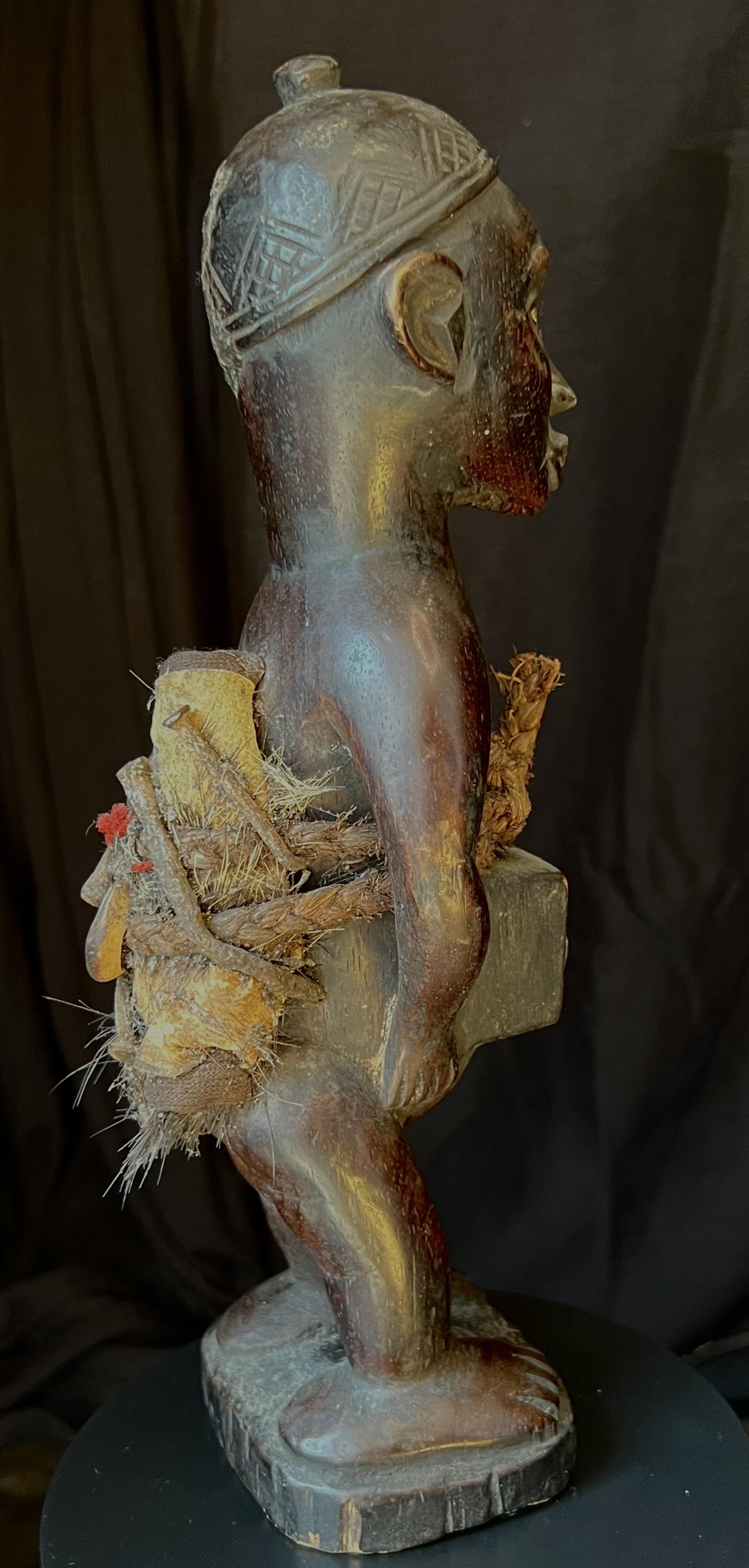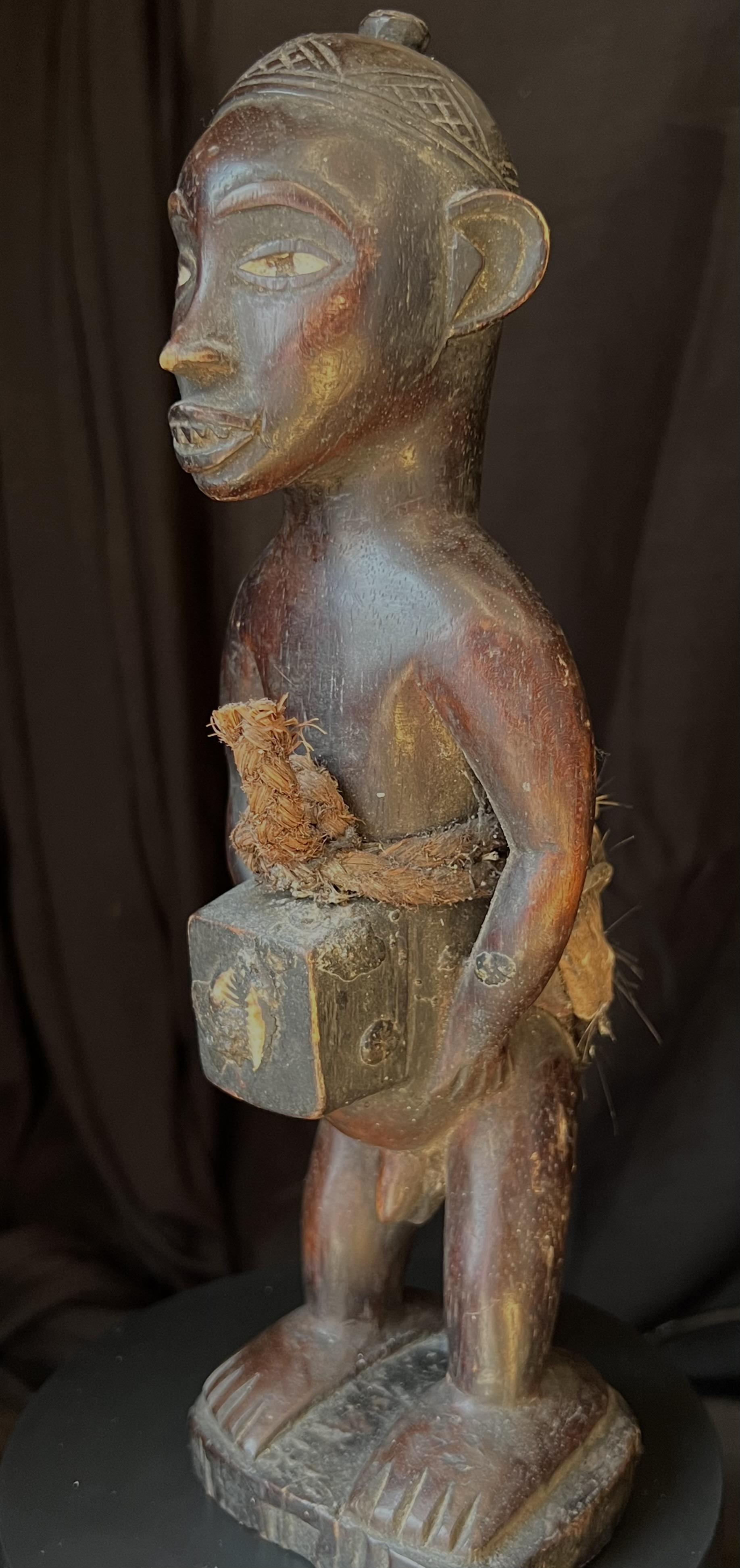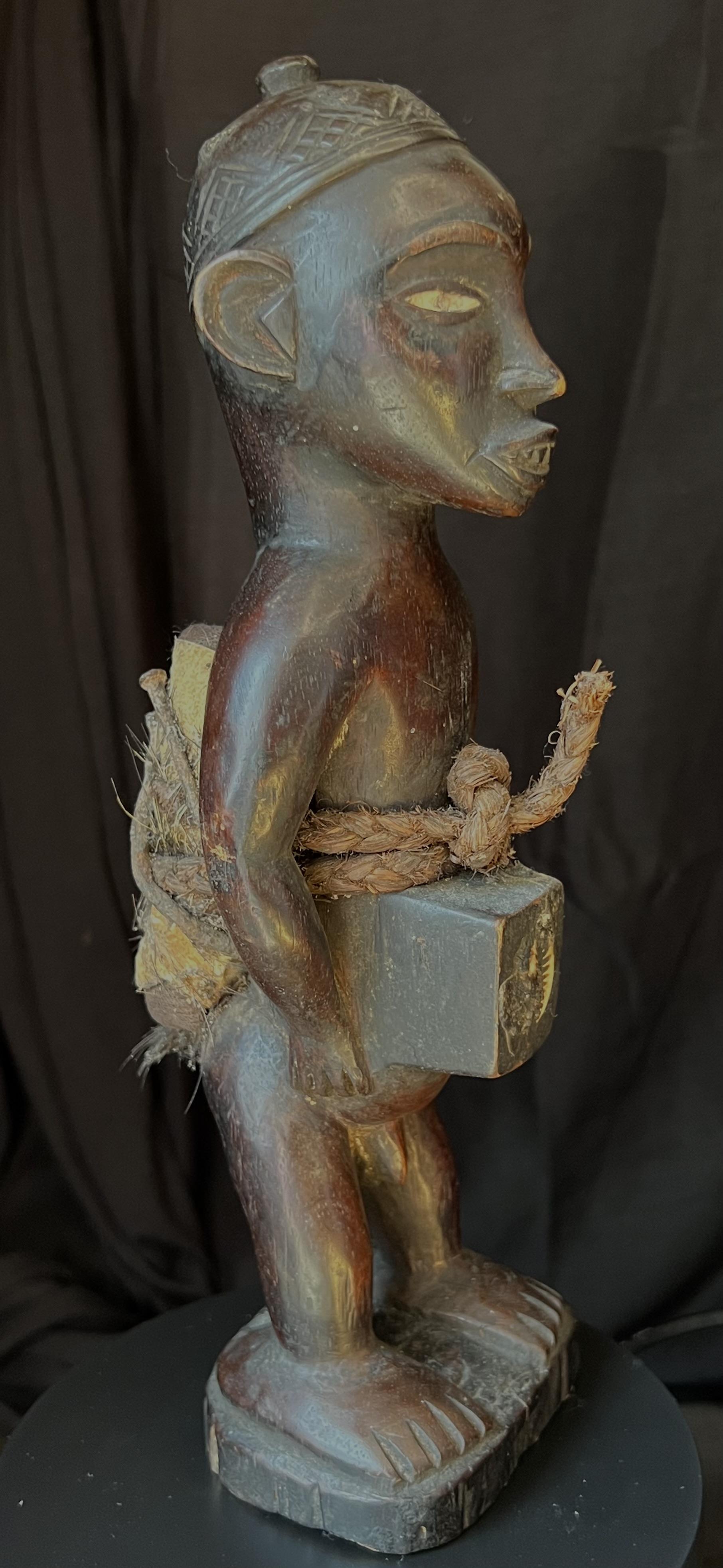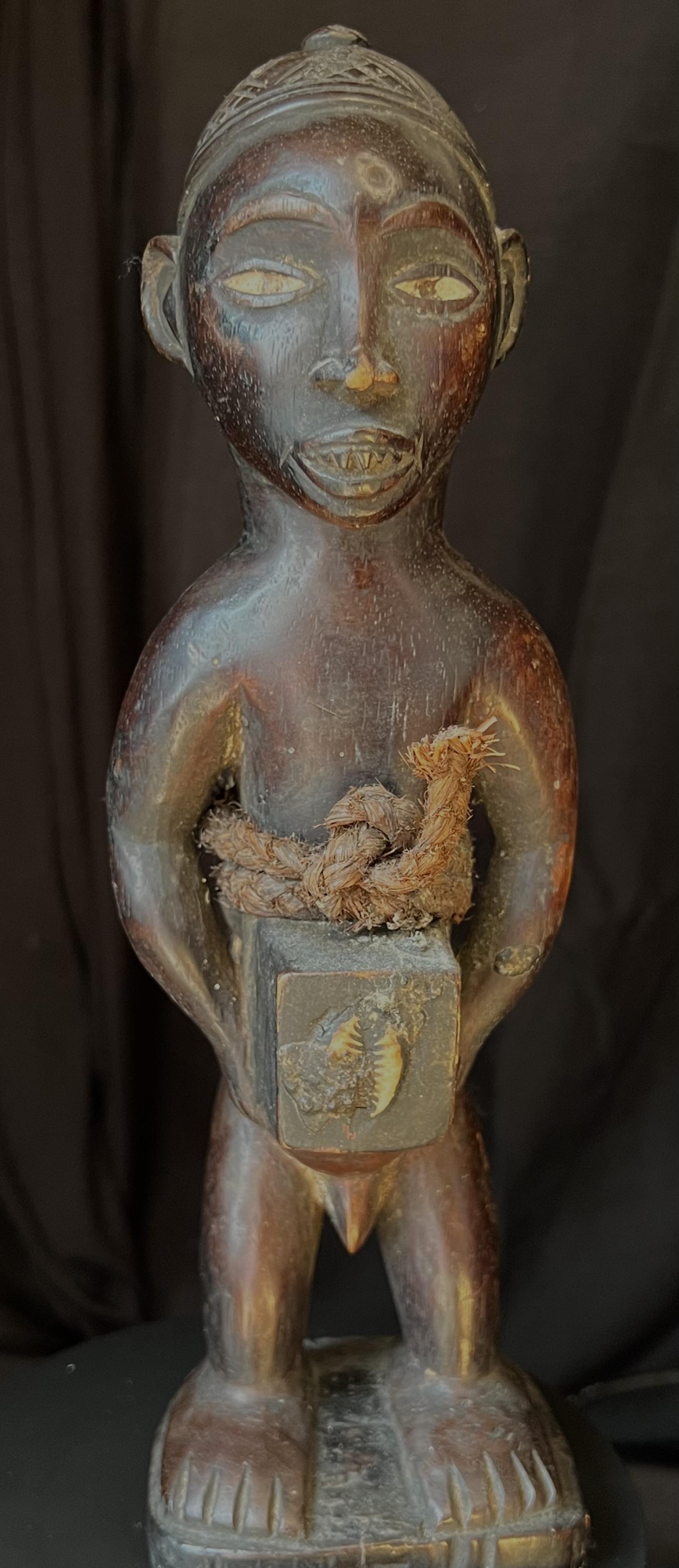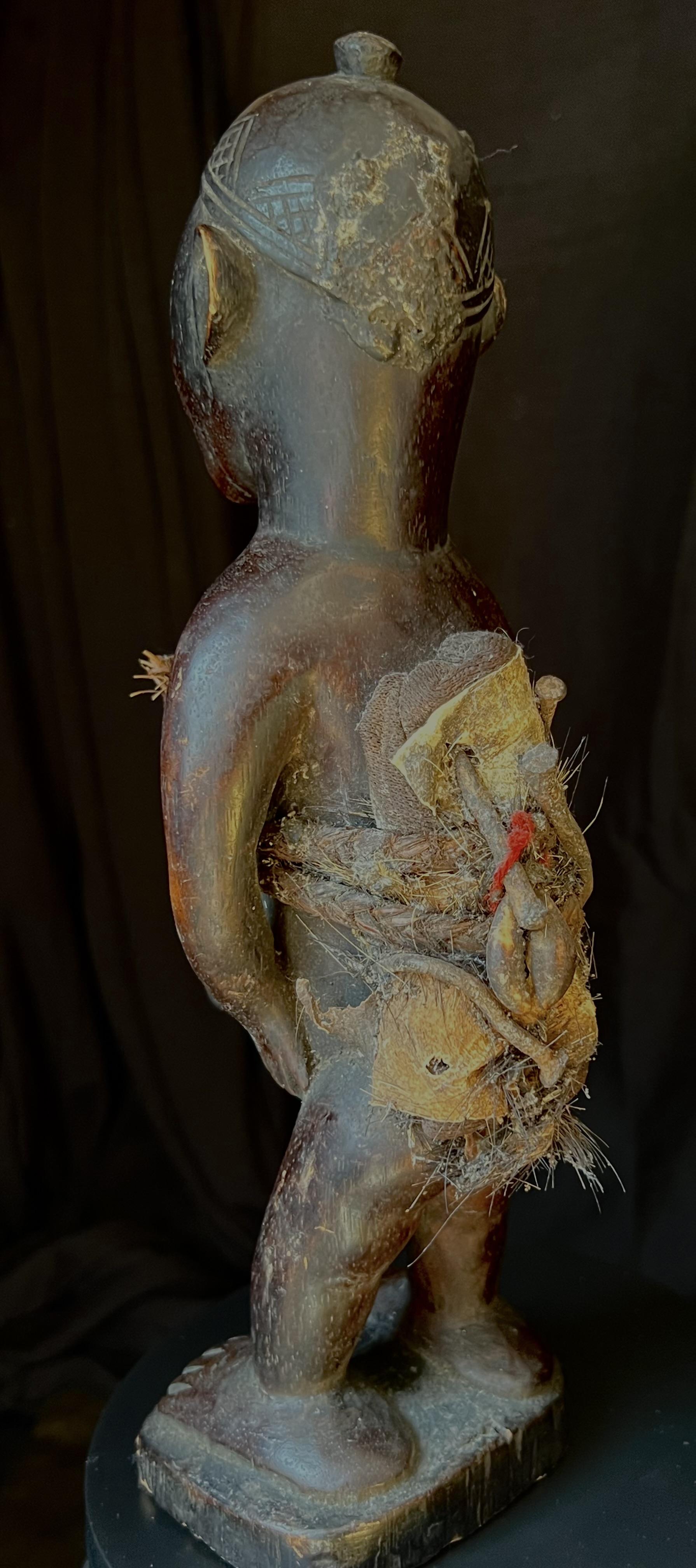 Spesielt dyktig utf;rt beskyttelsesfigur, med et meget sterkt uttrykk. Denne typen fetisj figurer ble brukt til [ beskytte mot sykdom, forbannelser (ganning), problemer med. [ f[ barn, d[rlig avlinger, d[rli jakt mm.