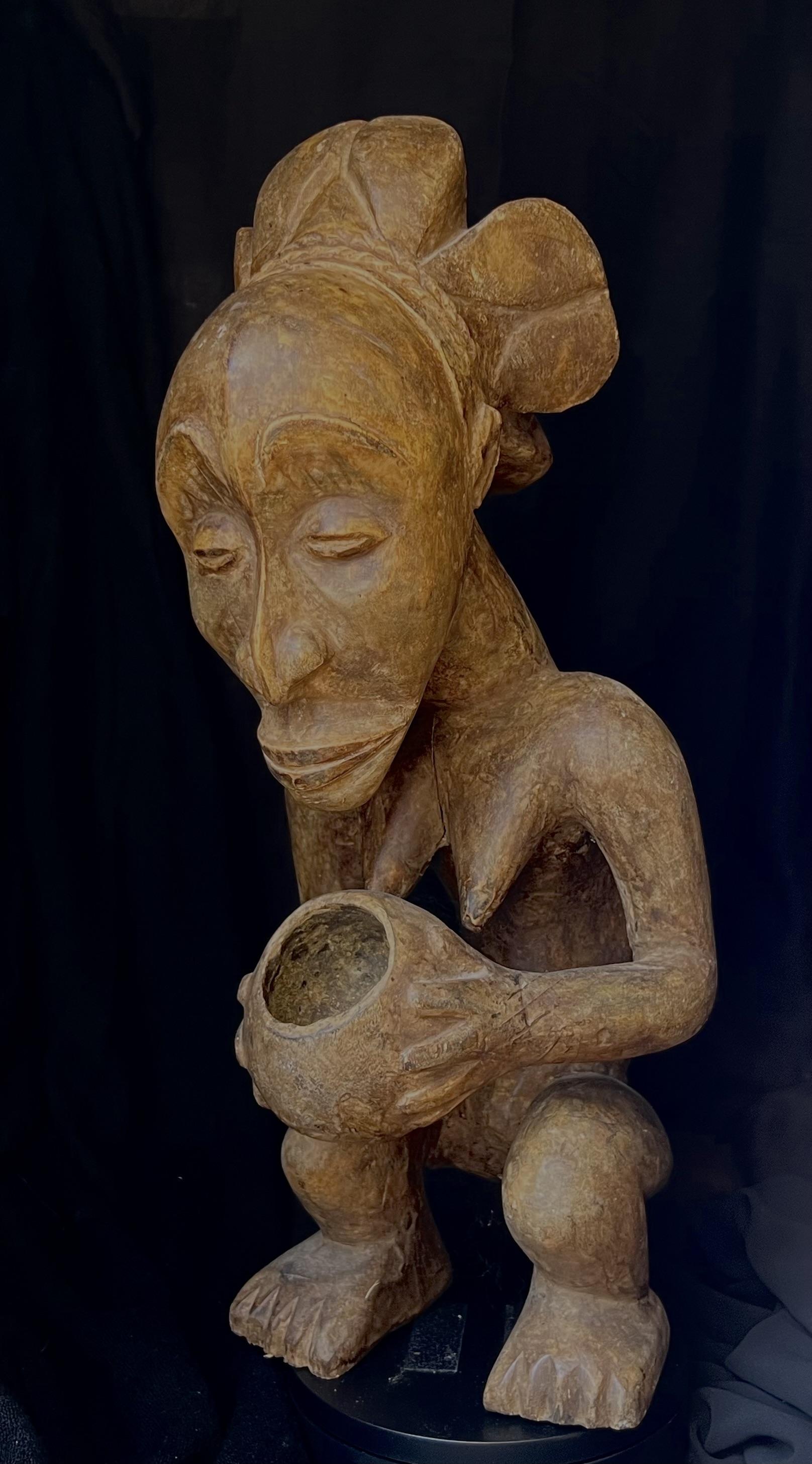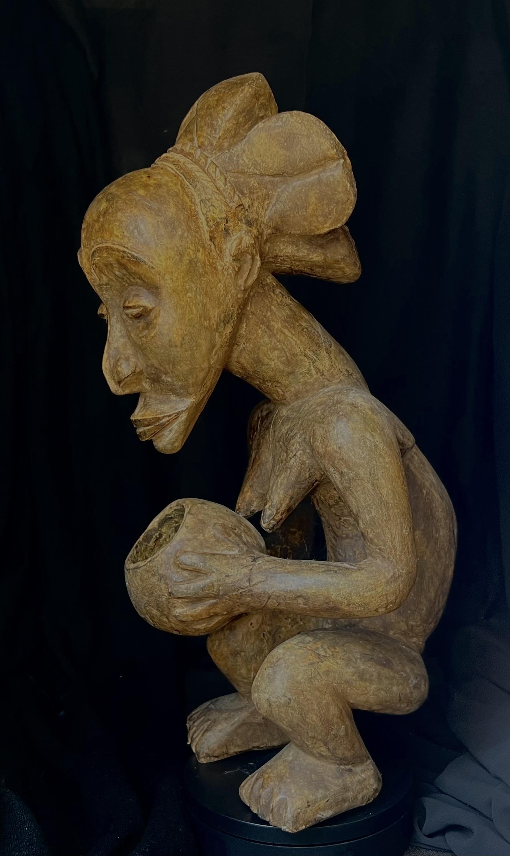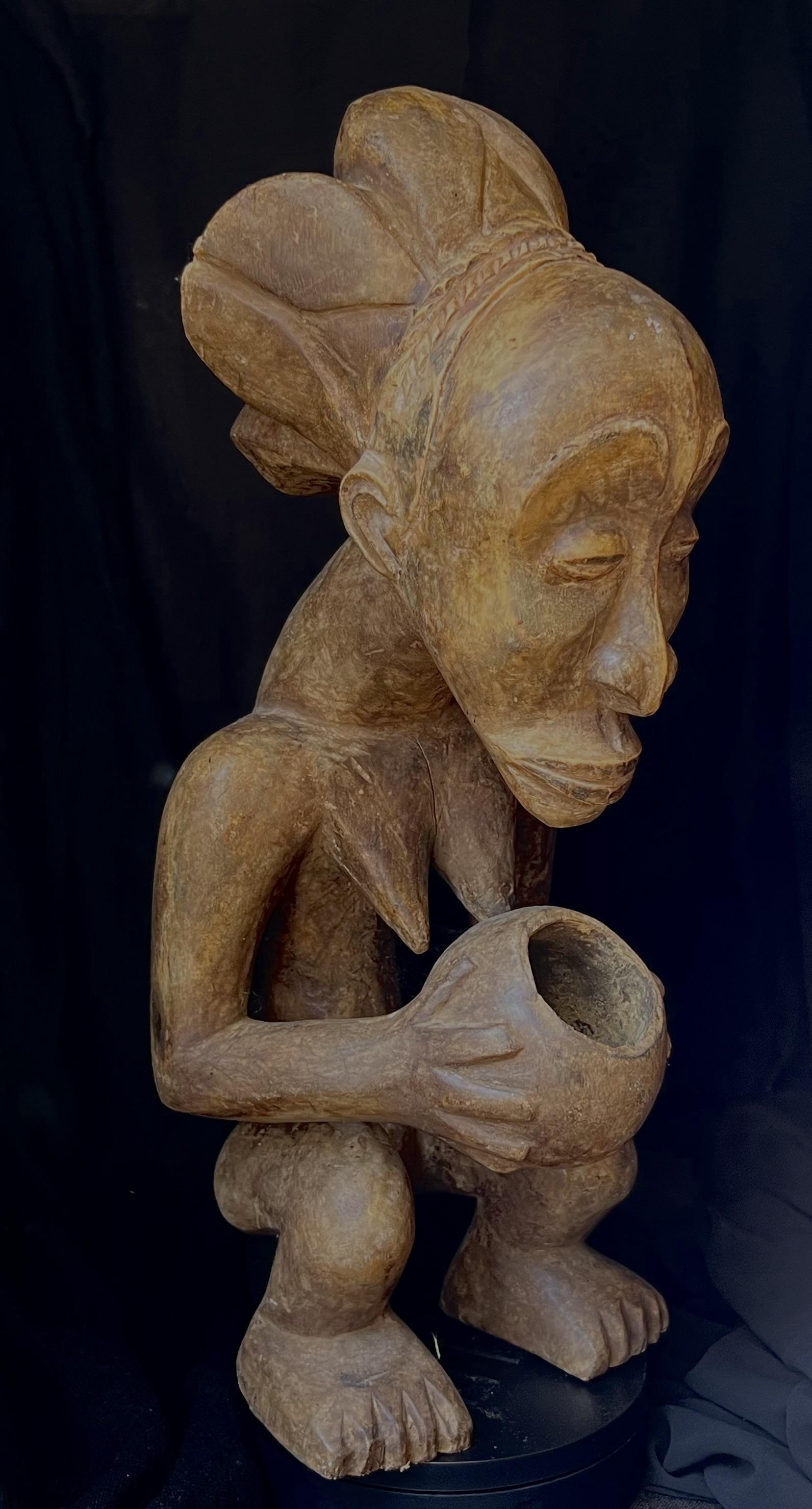 En spesielt dyktig utf;rt krukkeb’rer fra Luba folket i D.R. Congo, meget uttrykksfull, og typisk for denne folkegruppen. Den er i god stand og b’rer preg av tradisjonell bruk.