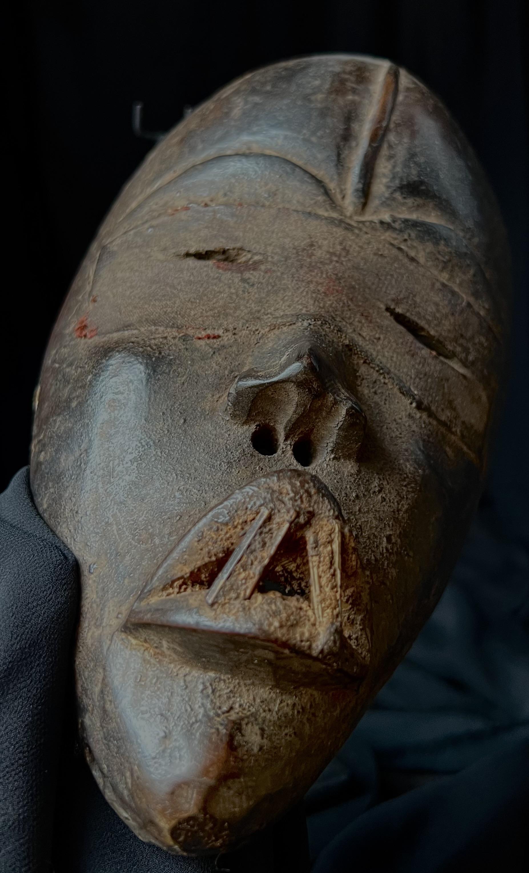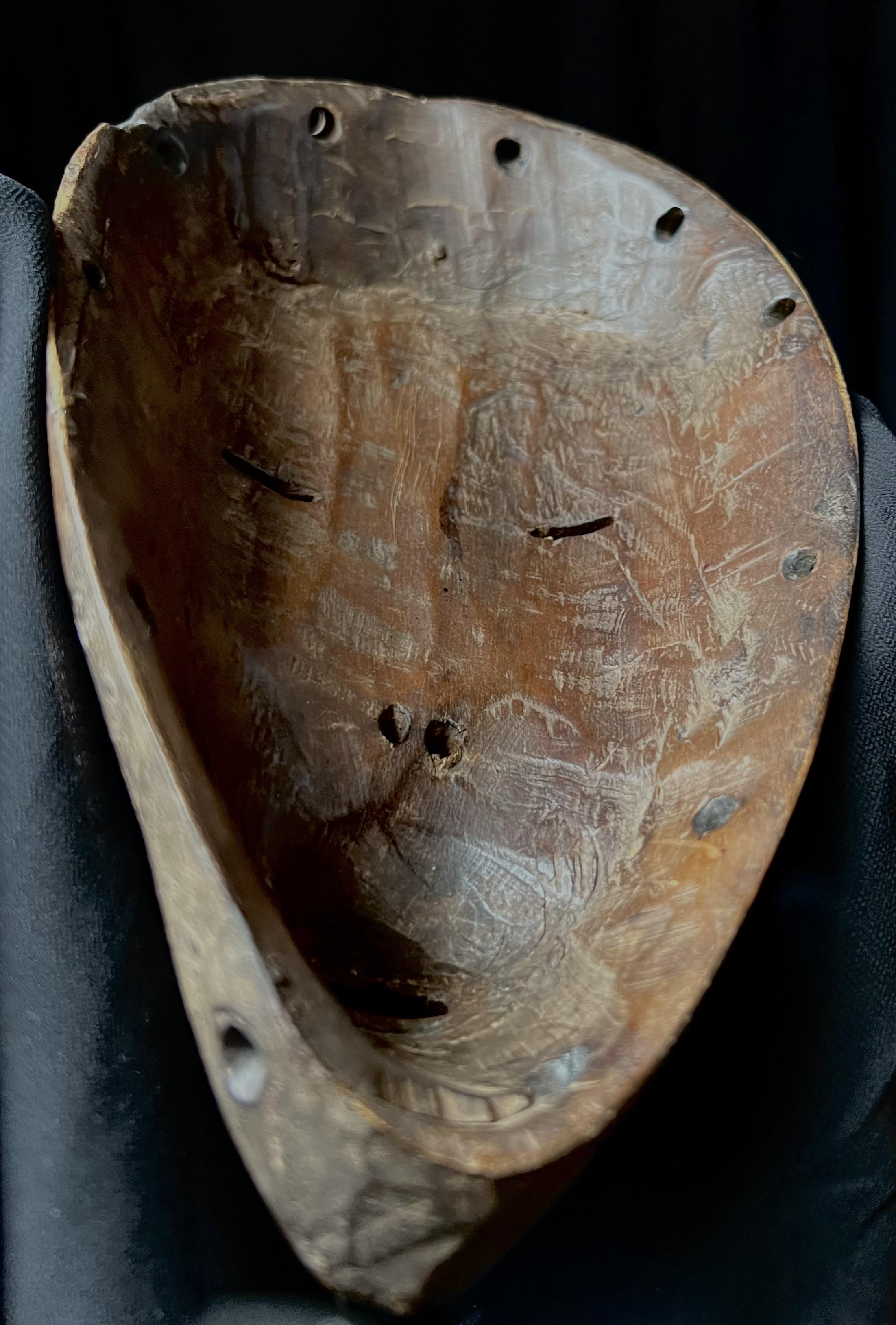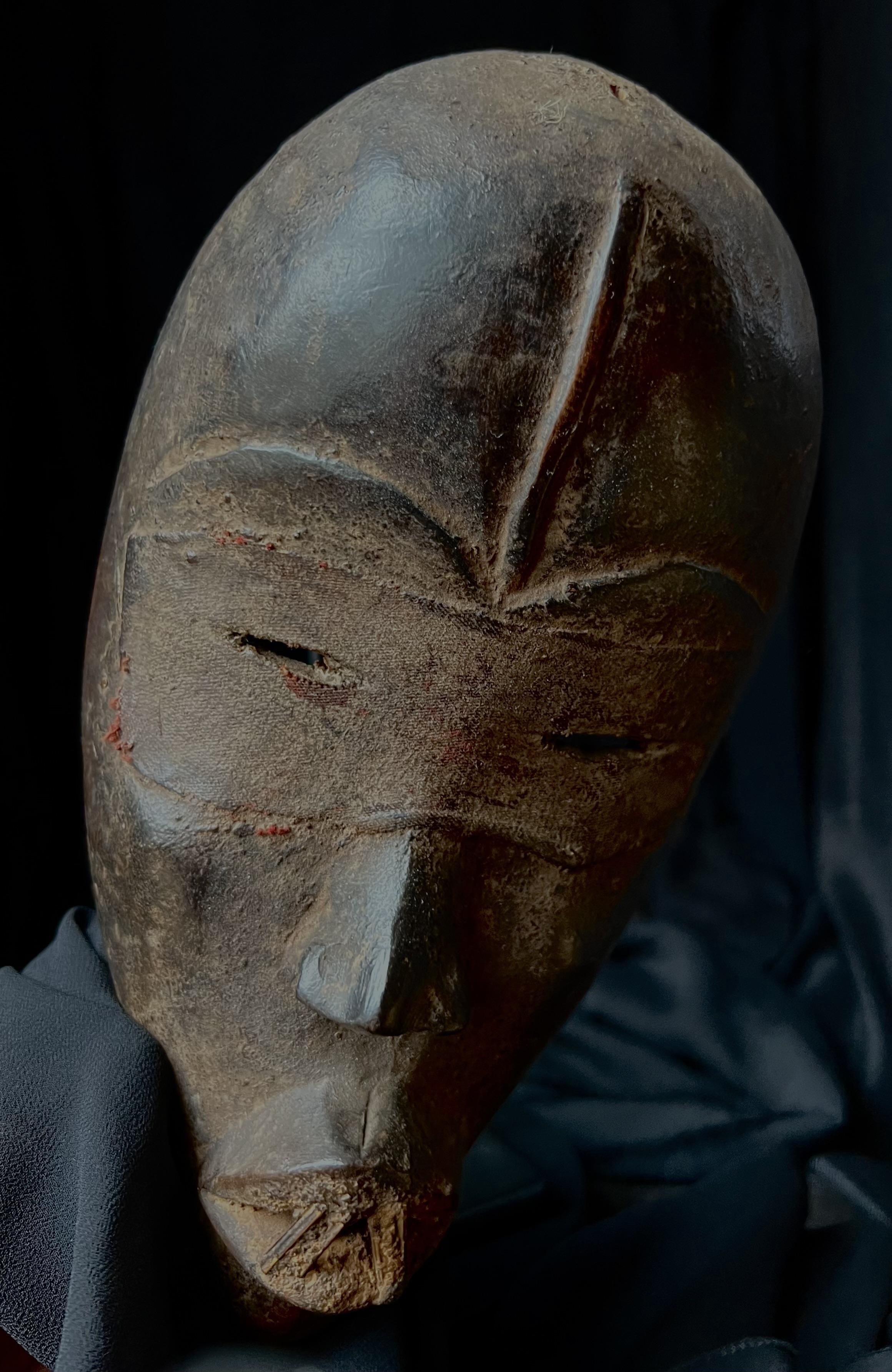 Typisk Dan maske med tydelige spor av lang tids bruk, vakker patina, og i god stand.