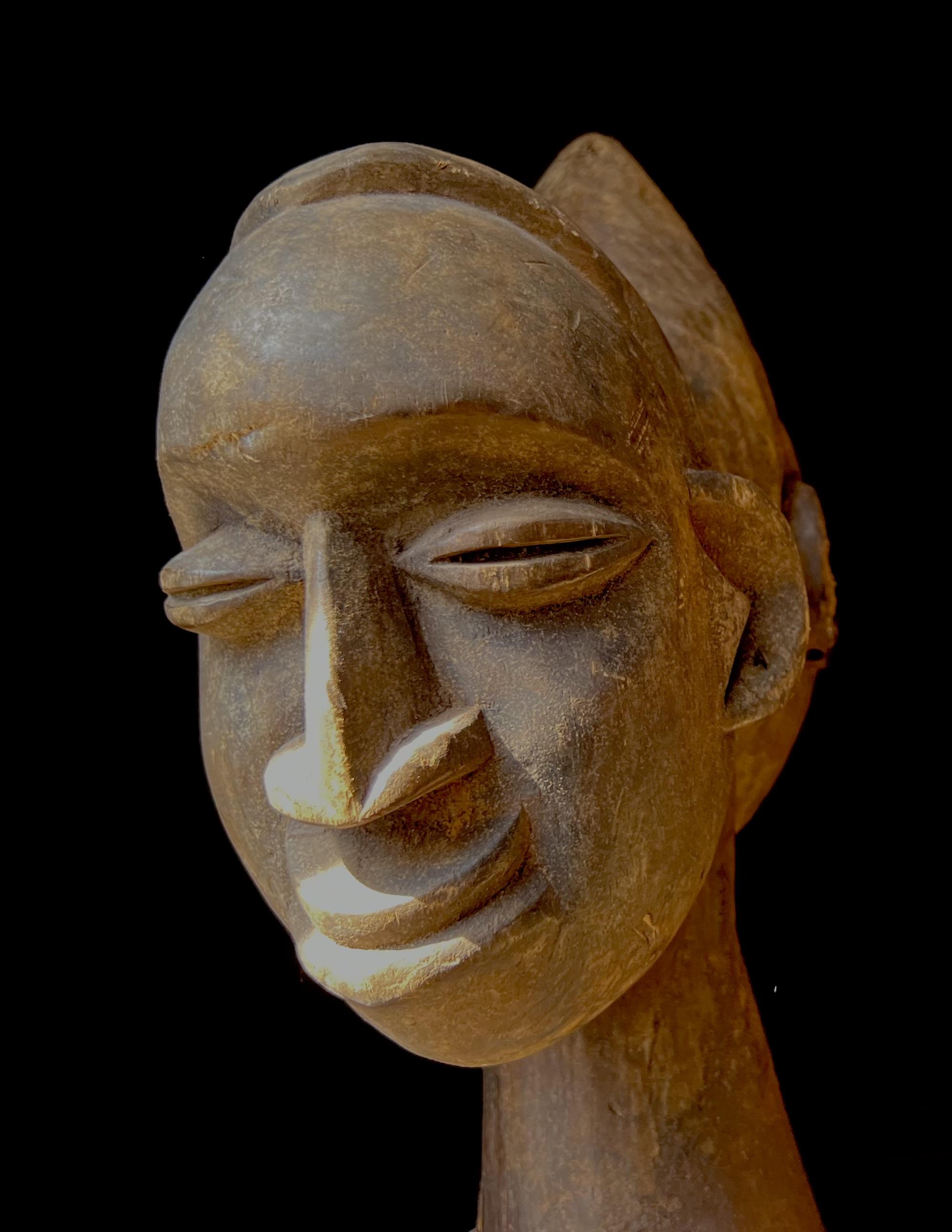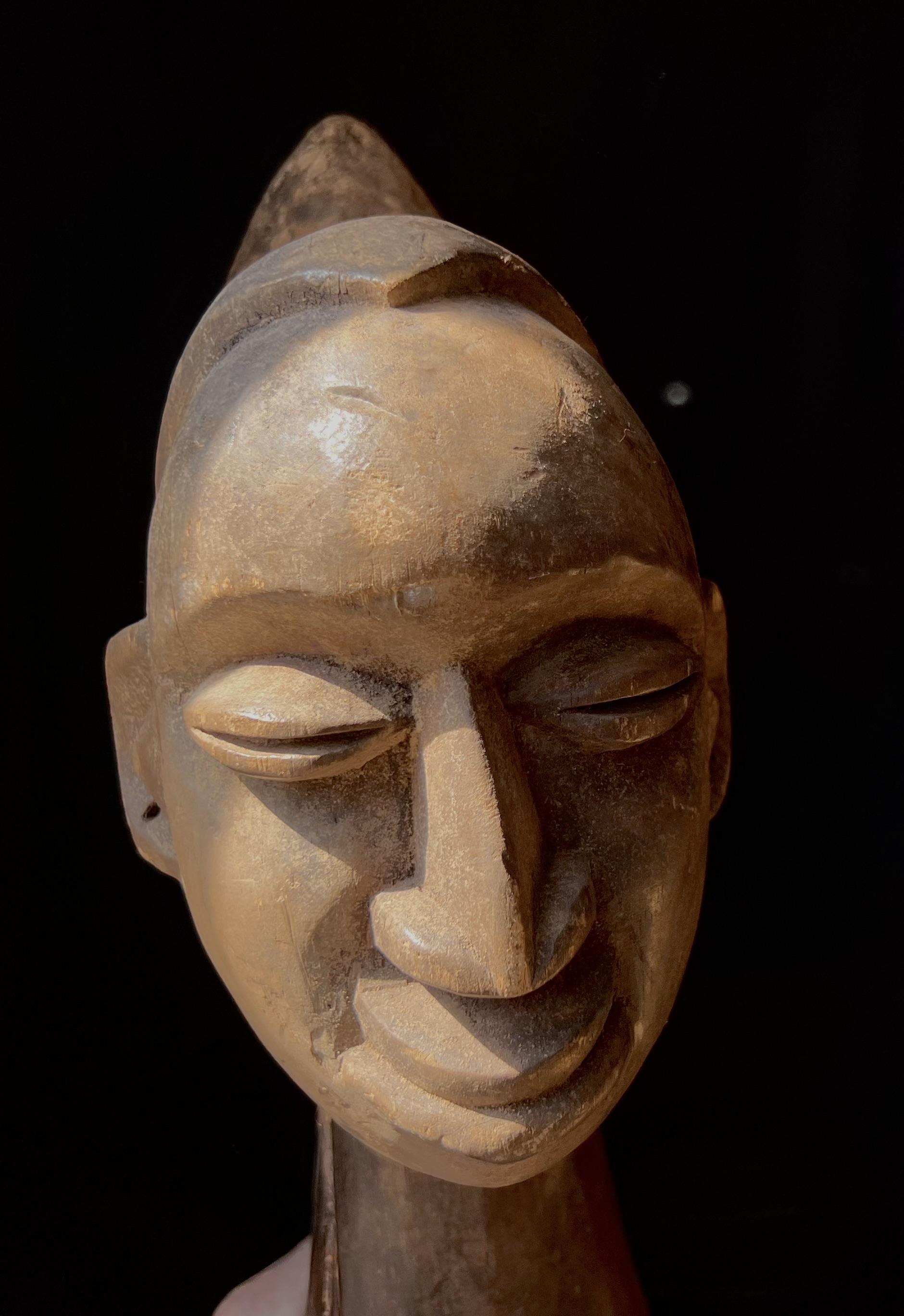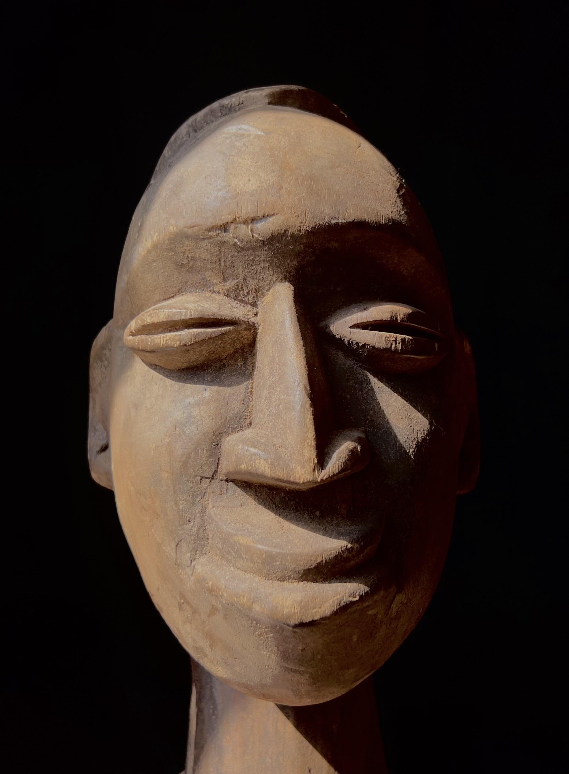 Dyktig utfort Janusfigur med to uttryksfulle hoder. I god stand med tydelige spor av alder og bruk.
