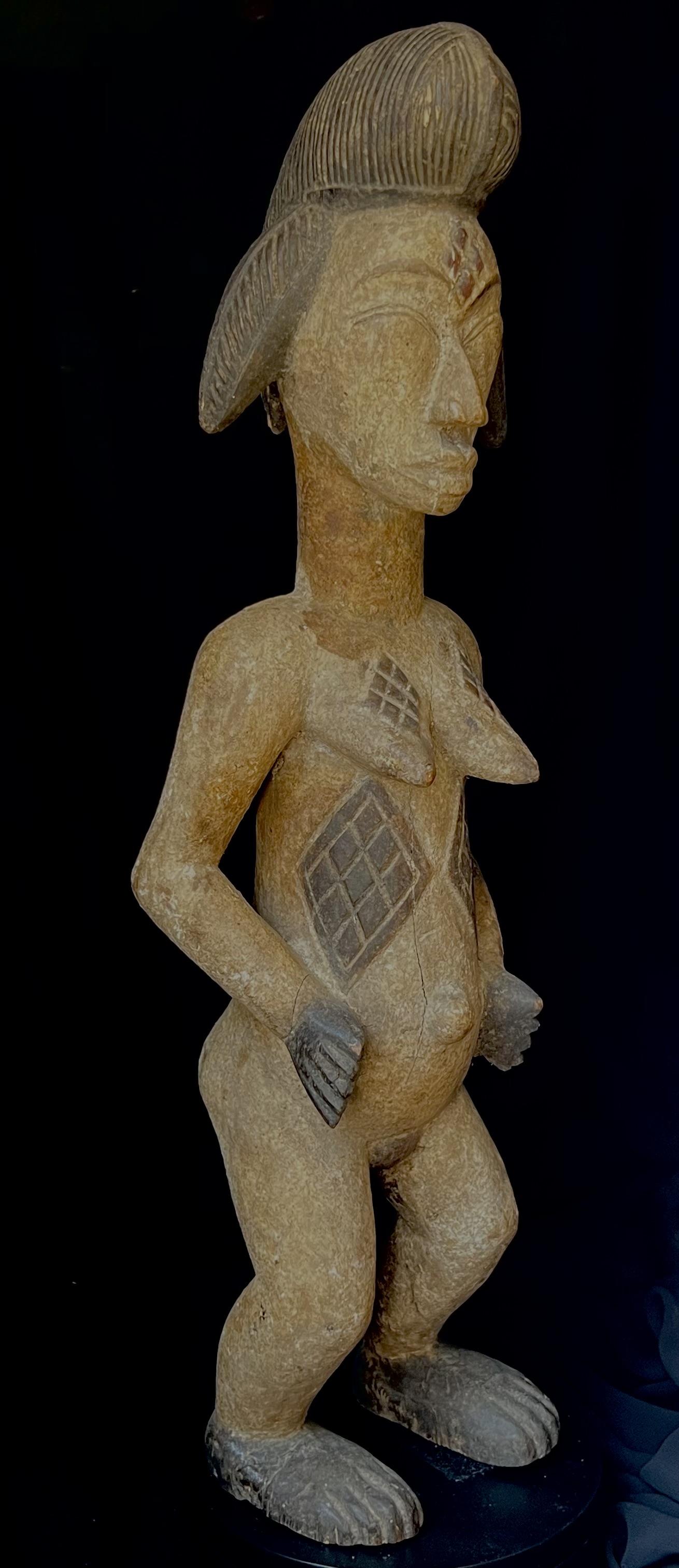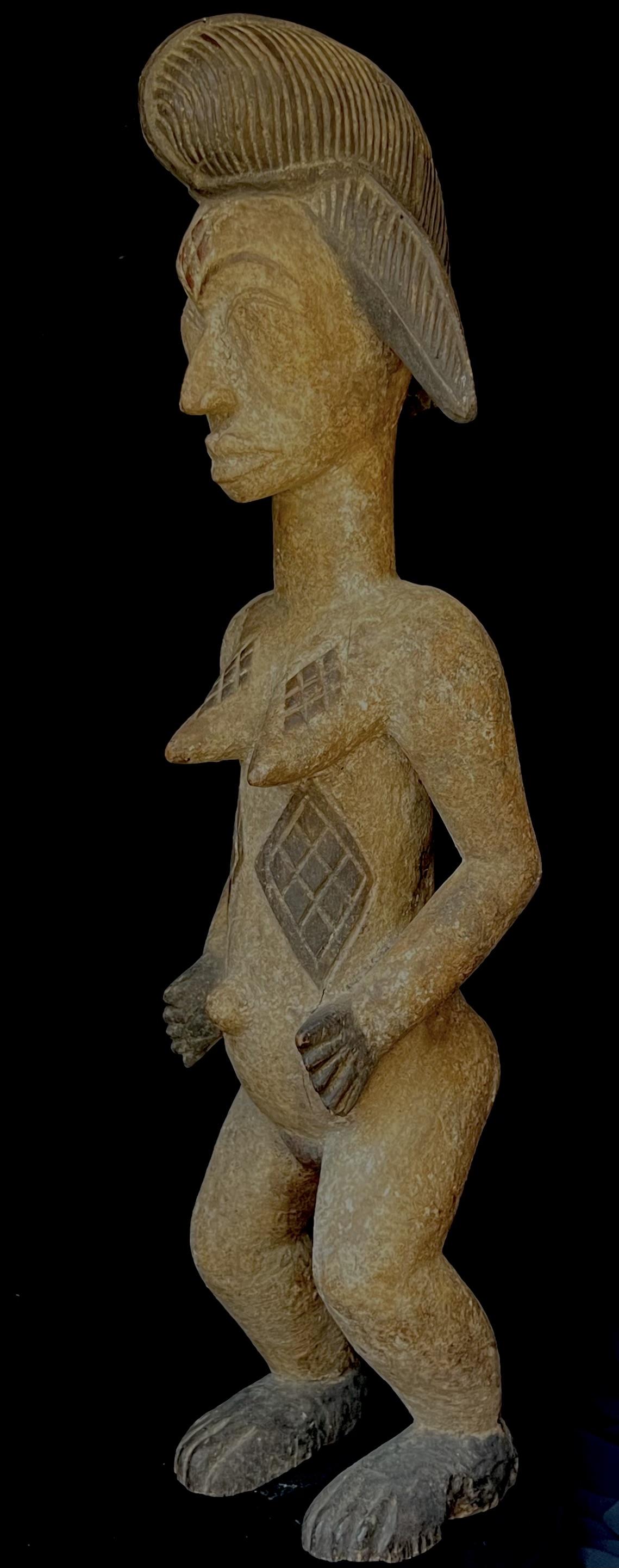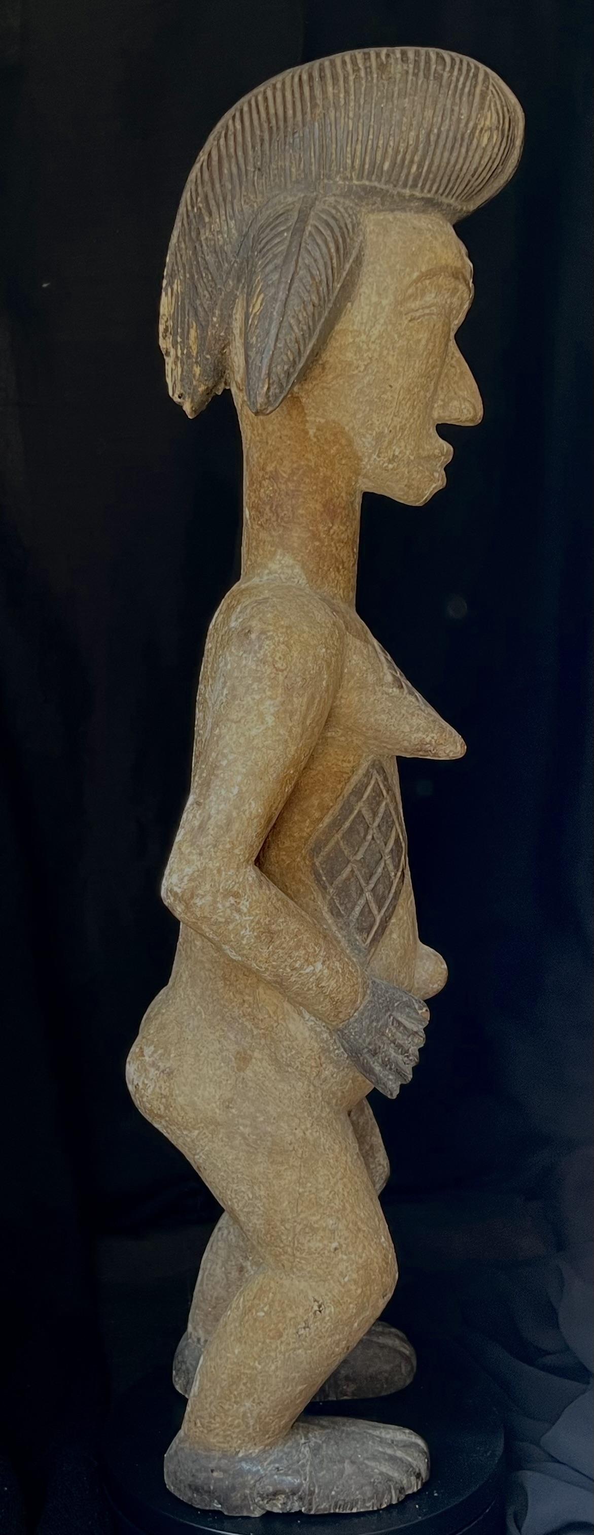 En stor, karakteristisk kvinnelig tre figur fra Punu folket i Gabon. I god stand, med spor av bruk.
