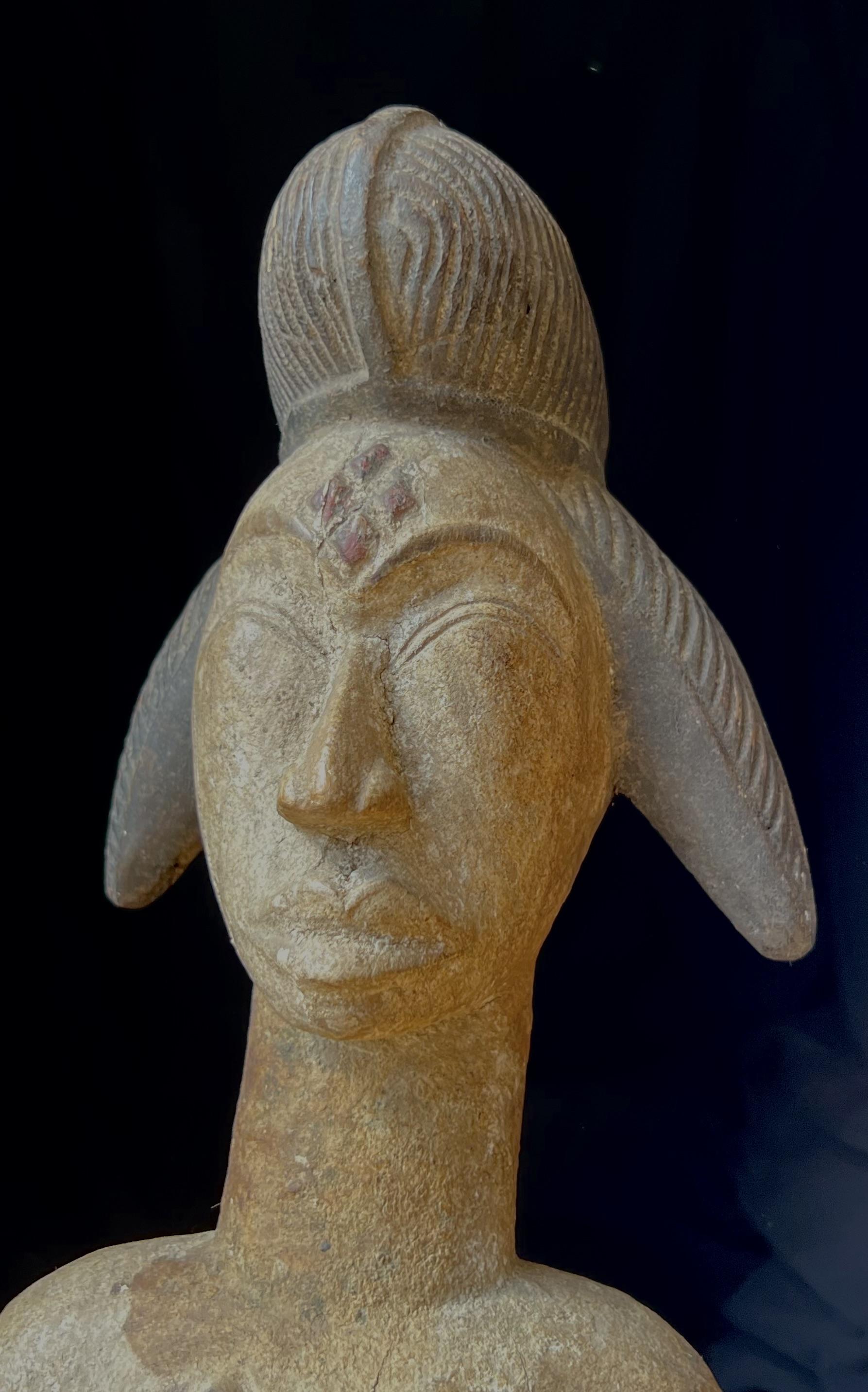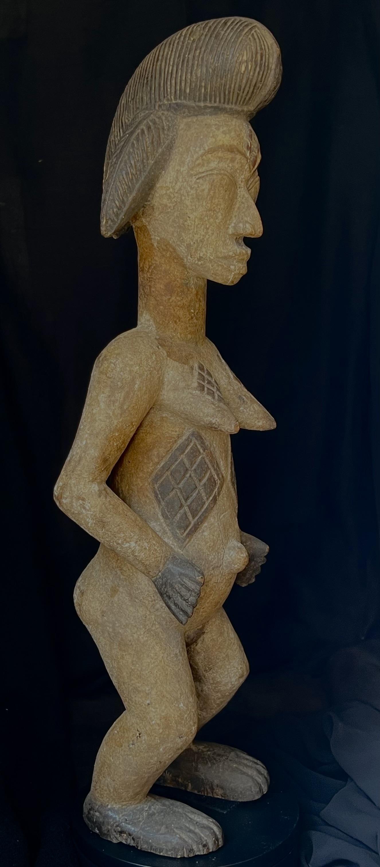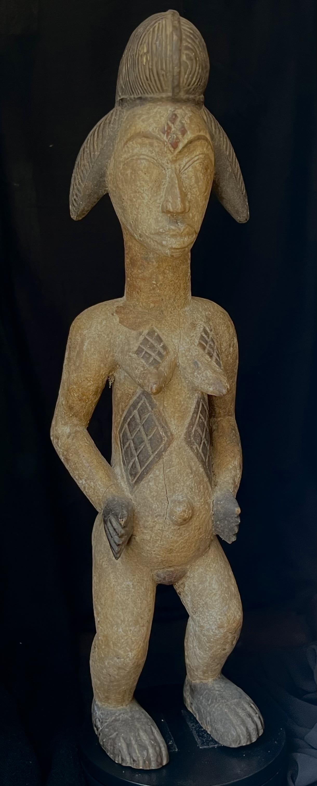 En stor, karakteristisk kvinnelig tre figur fra Punu folket i Gabon. I god stand, med spor av bruk.