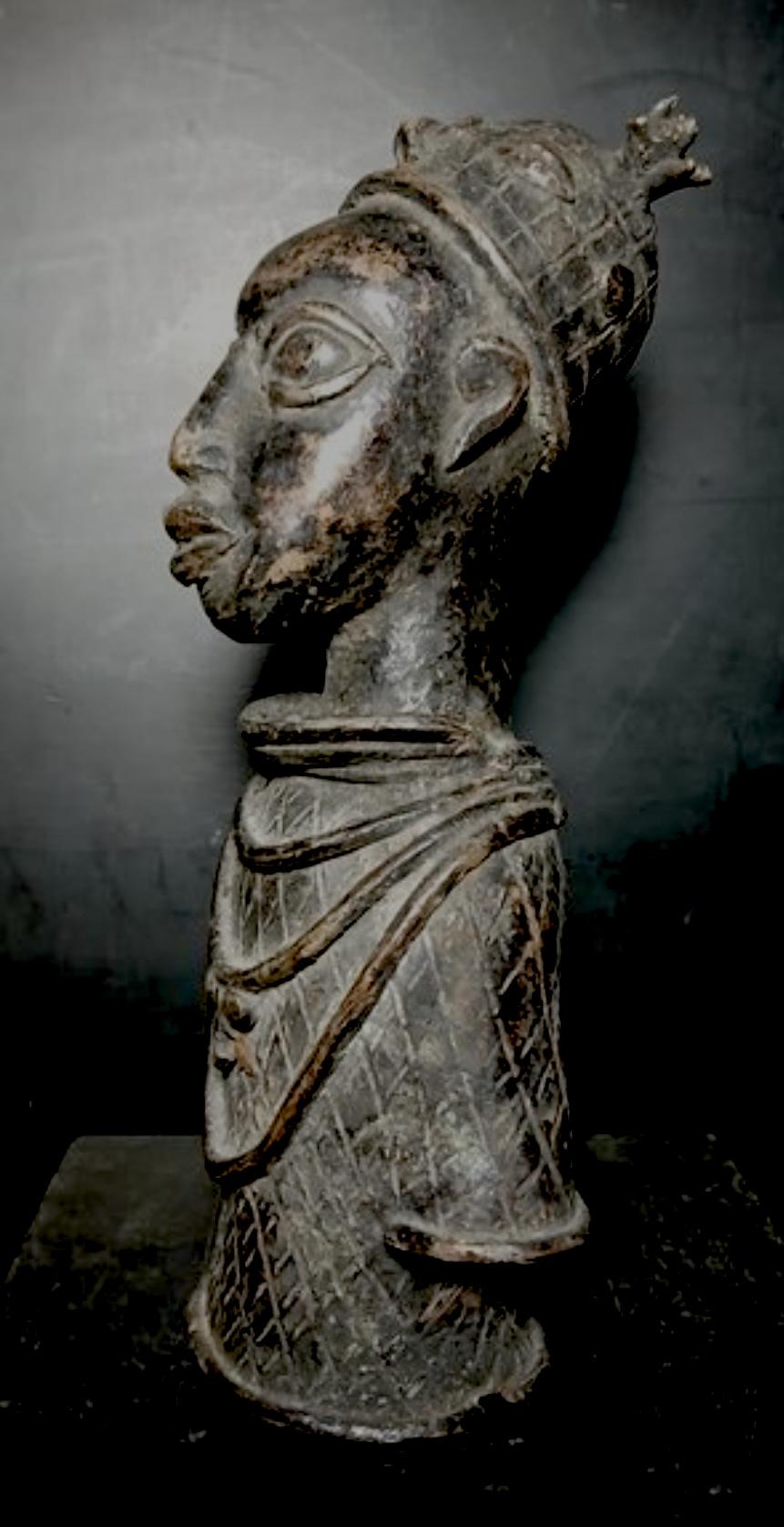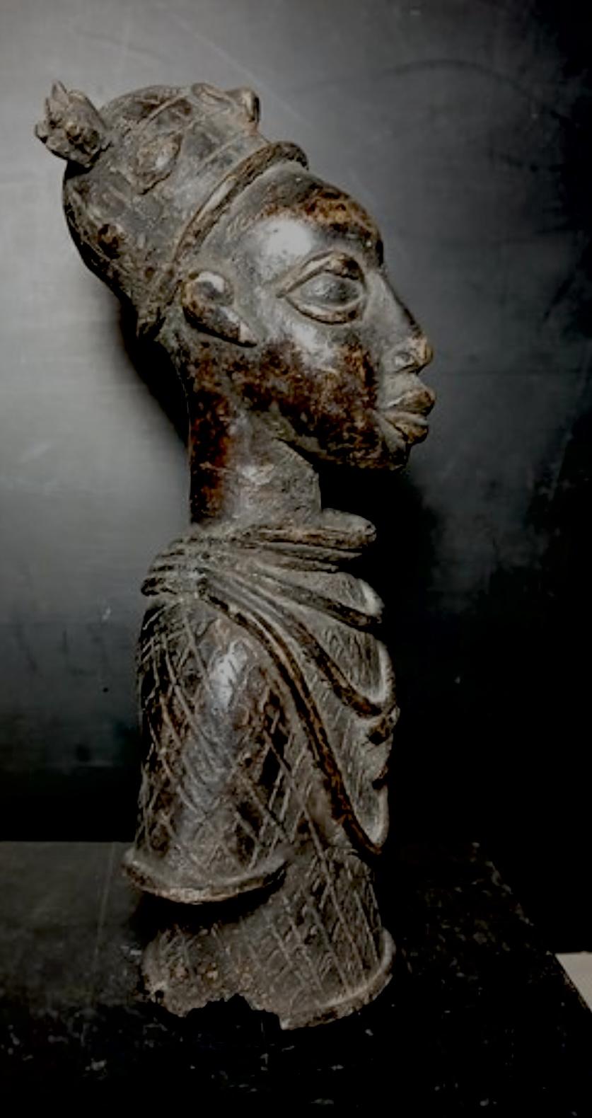 Nydelig liten bronsefigur fra Yoruba folket, støpt etter “lost wax” metoden. Vakker patina.