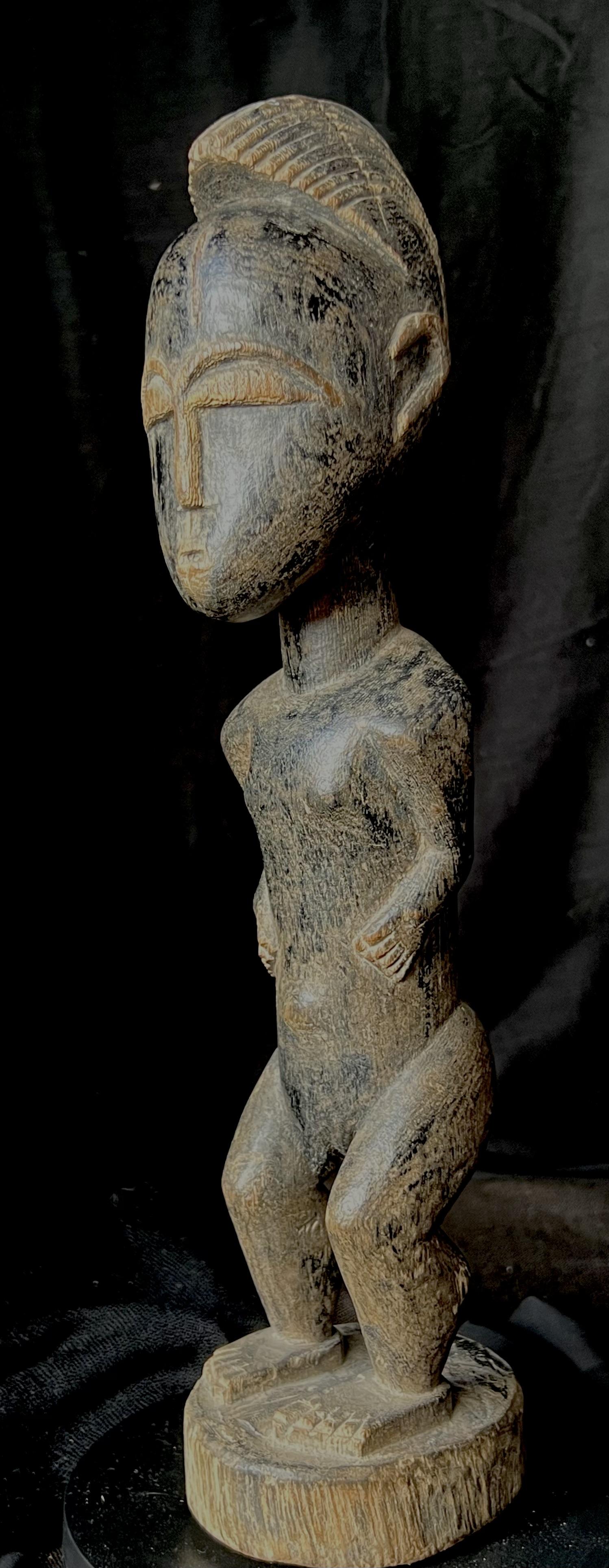 vakker, eldre forfedrefigur med et særegent uttrykk. Vakker patina og i meget god stand.