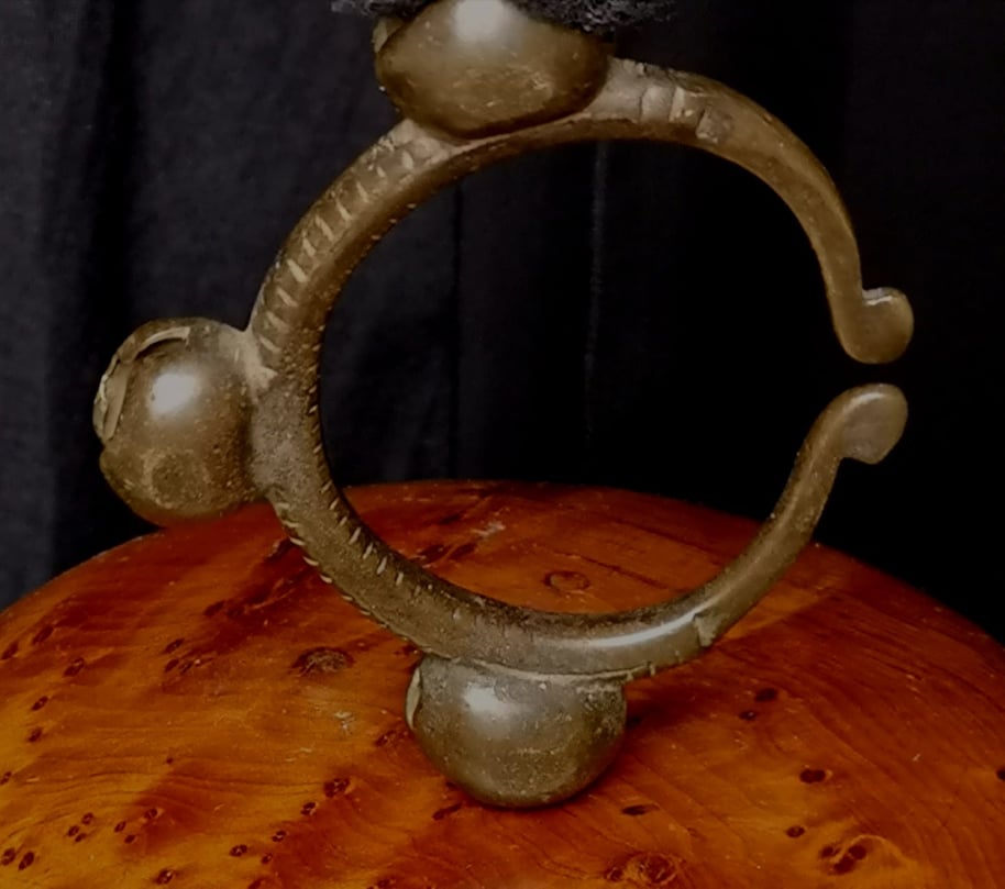 Gammelt “rangle» armbånd fra Elfenbenskysten. Laget i bronse med innebygde "bjeller", fremstillet gjennom den gamle støpeteknikken med forming i voks og sandform. Flott patina. Ukjent alder, med spor av bruk, men i god stand tross sannsynligvis ganske gammel.