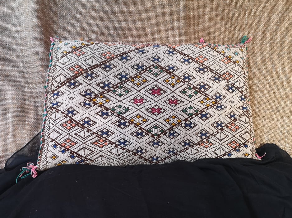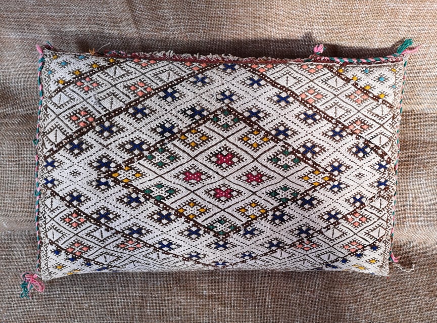 Tradisjonell, vevet pute fra HøyAtlas fjellene i Marokko. Typiske, ulike mønstre på hver side.