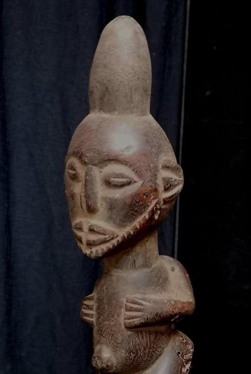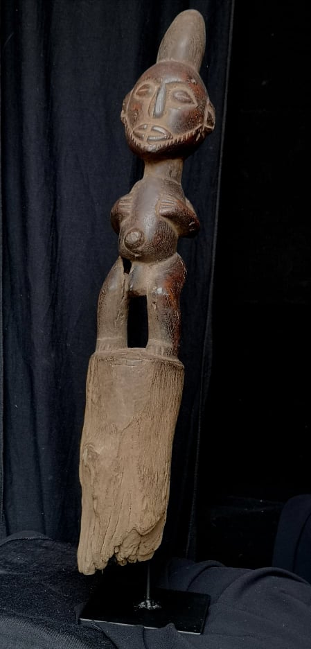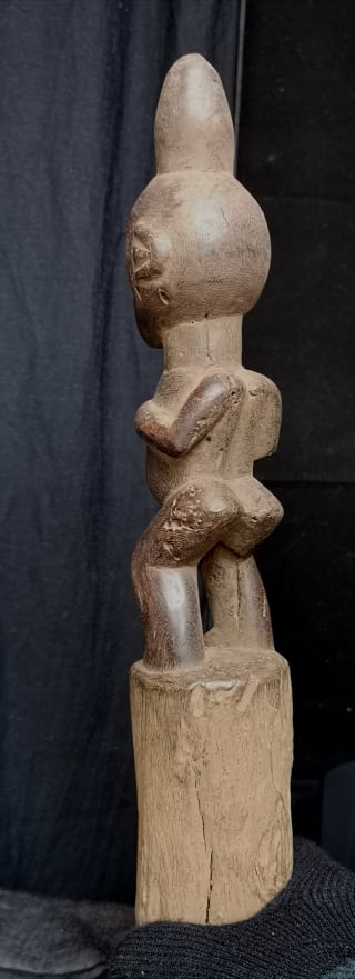 Sjelden fetisj figur fra Luba folket, fra Den Demokratiske Republikk Congo. Dyktig skÃ¥ret, med typiske trekk, preget i bunnen av termitter og tidens tann.Â
